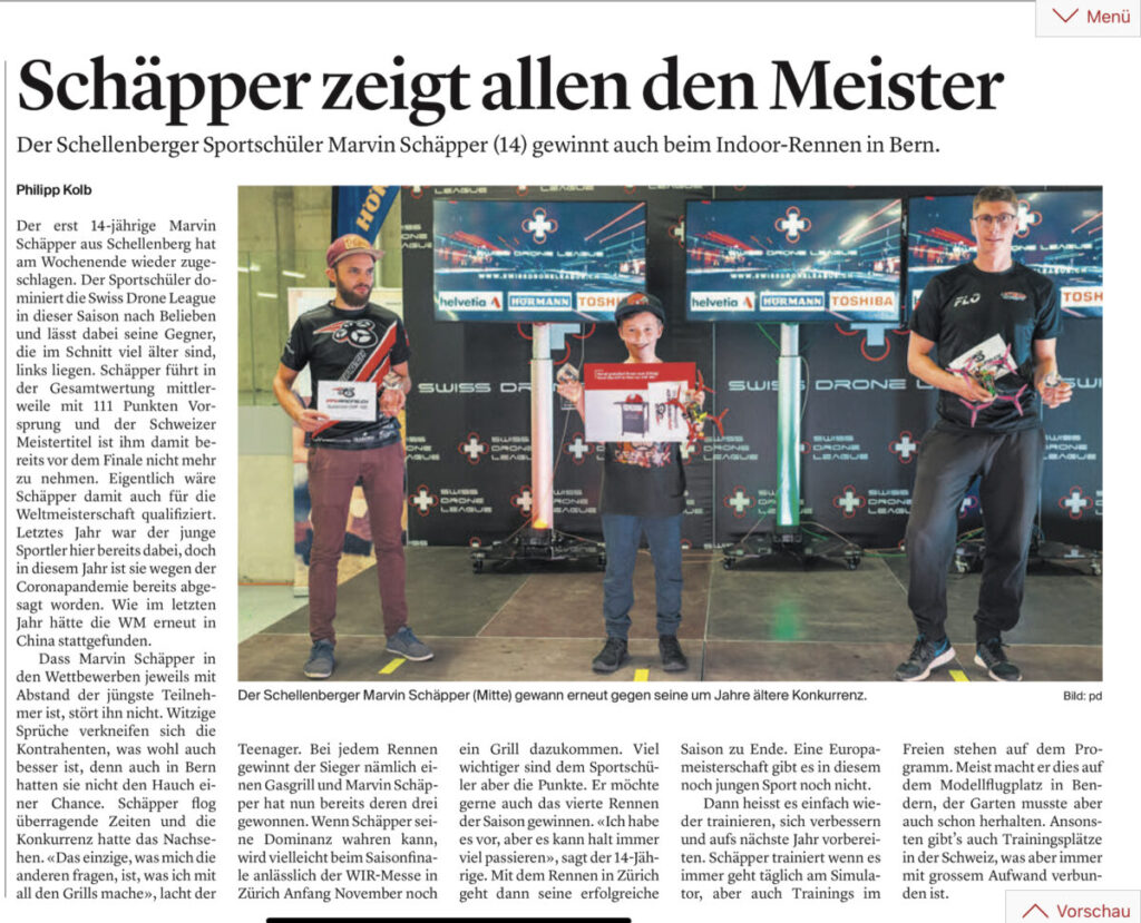 Marvins Erfolgsgeschichte geht weiter | Swiss Drone League Bern